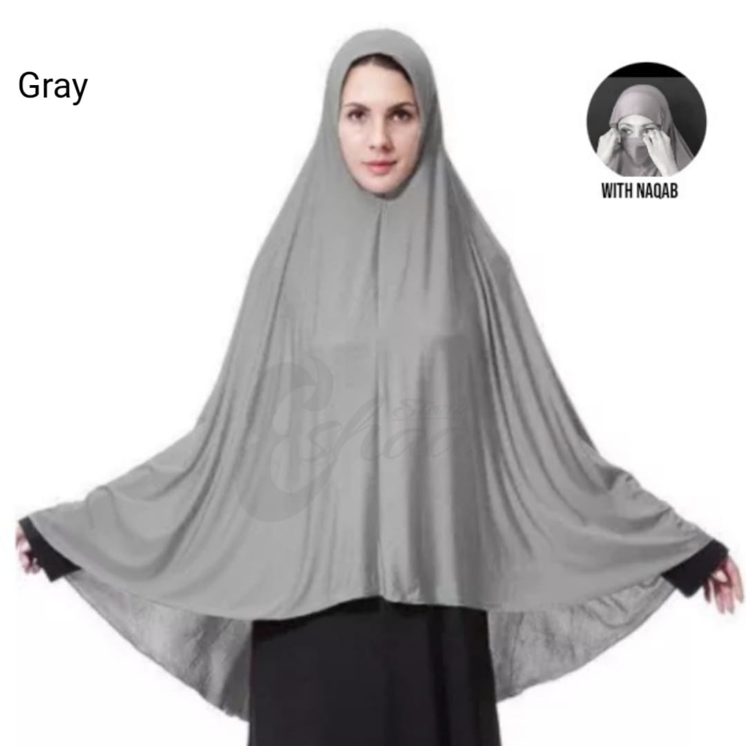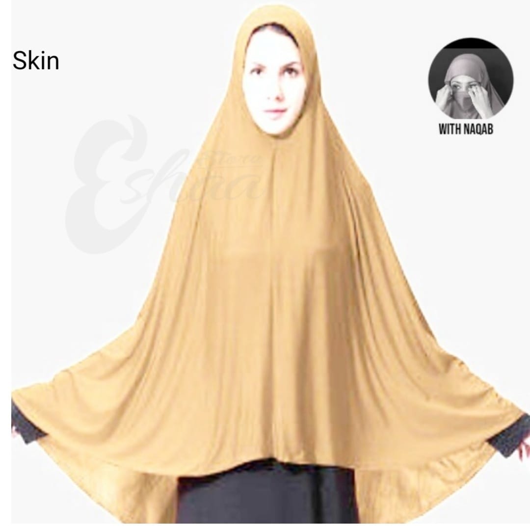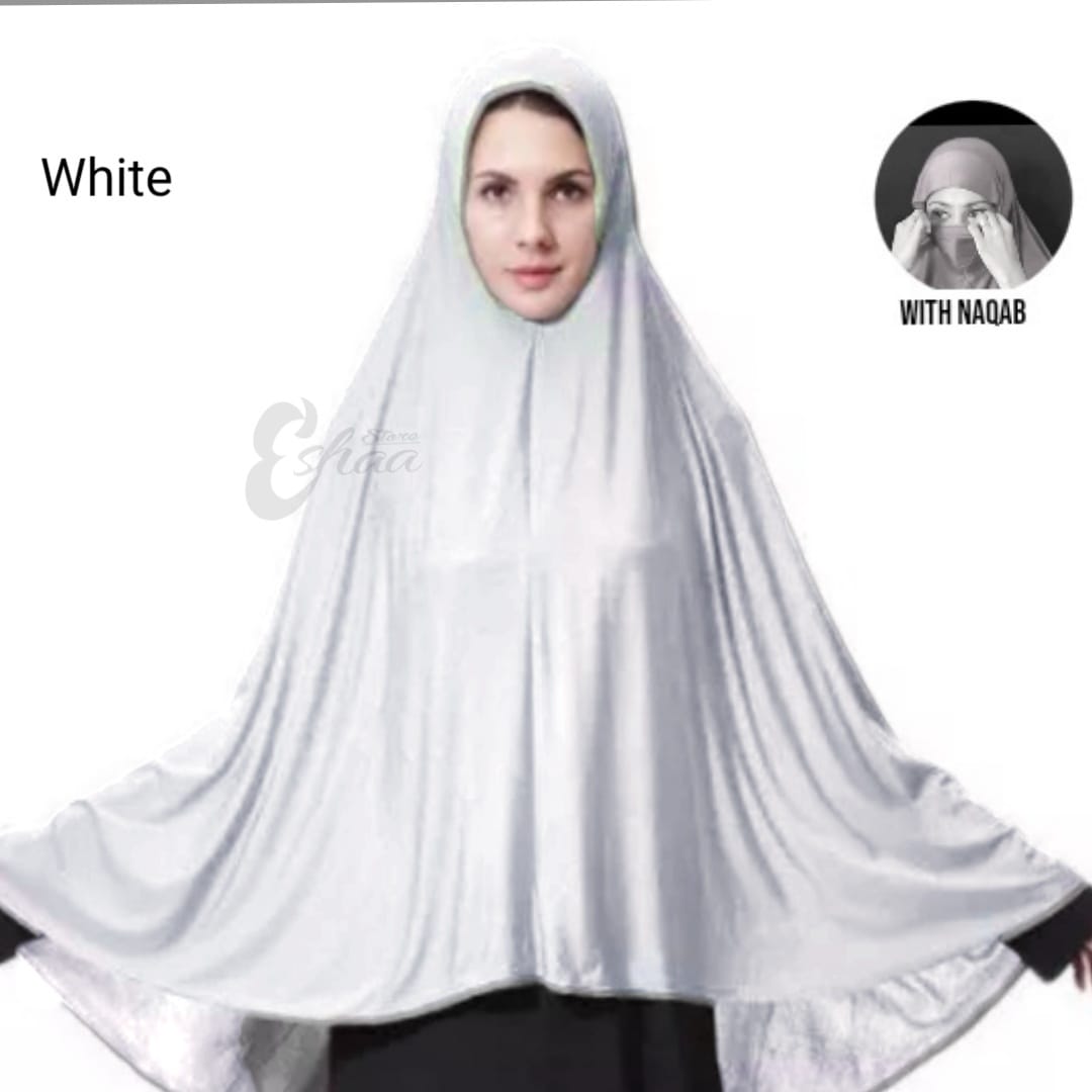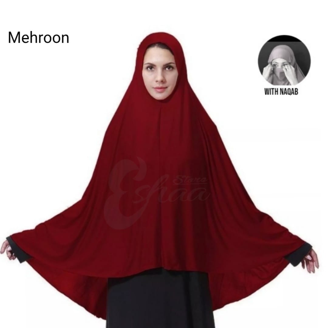 Namaz Scraf Hijab Ehram ChadarEsay to wear Namaz Scarf with naqab No need to pin or cap Soft Cotton Jerci fabric Size front 42 back 38 Full Covered head to bottom waist AVAILABLR DIFFERENT COLOR Follow eshaa store